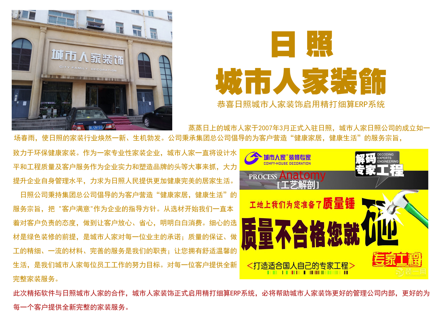 恭喜日照城市人家裝飾啟用精打細(xì)算ERP系統(tǒng)