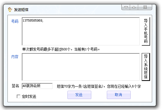 在短信內(nèi)容里面填寫要發(fā)送給客戶的內(nèi)容。